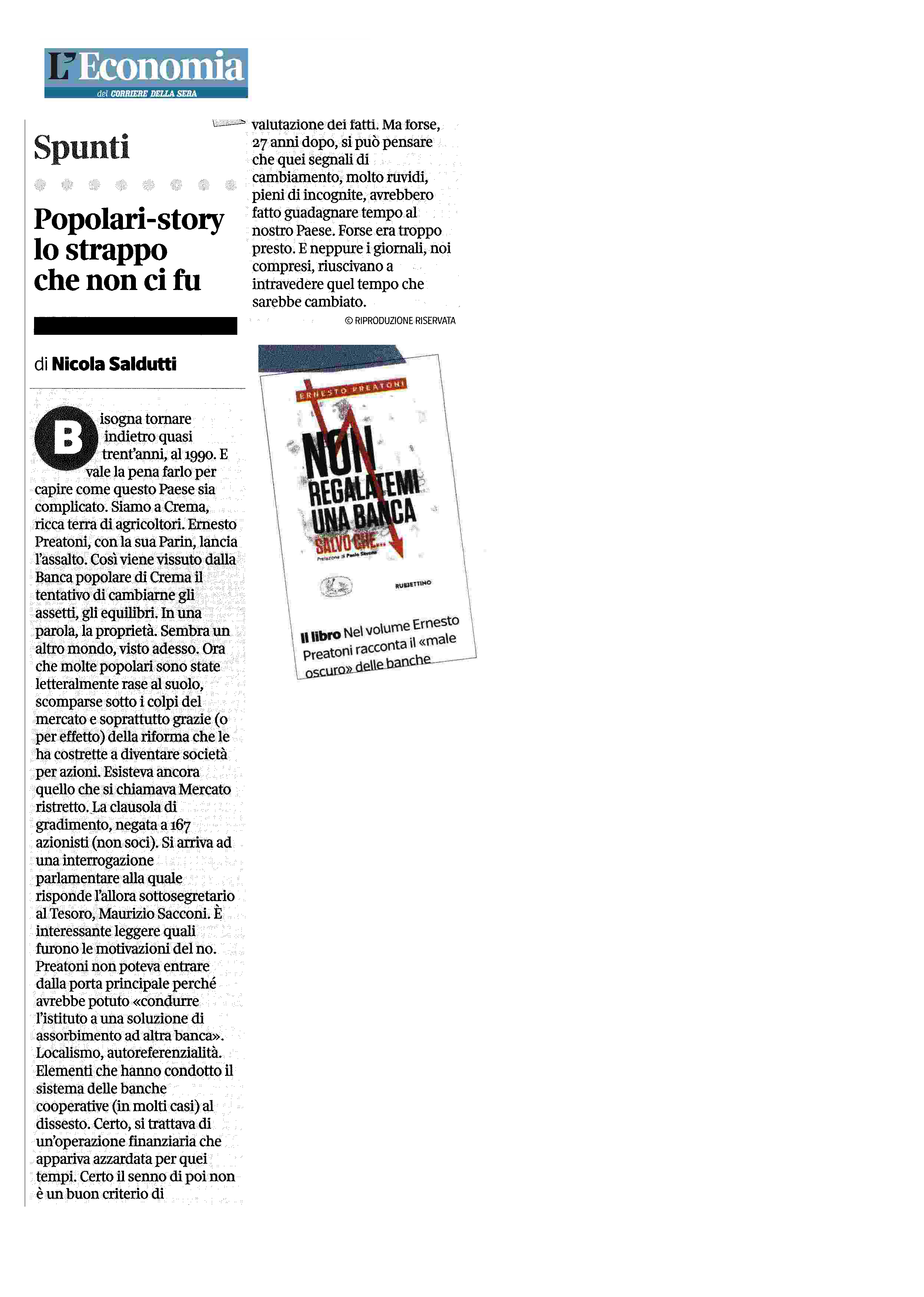 Corriere L’Economia – preatoni, banche e borsa guarda chi si rivede Clicca qui per leggere l’articolo