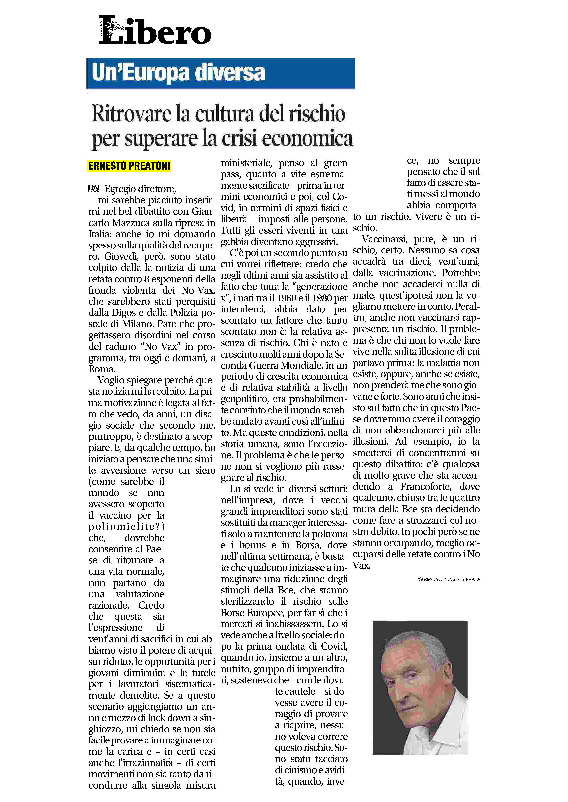 Libero – Ritrovare la cultura del rischio per superare la crisi economica