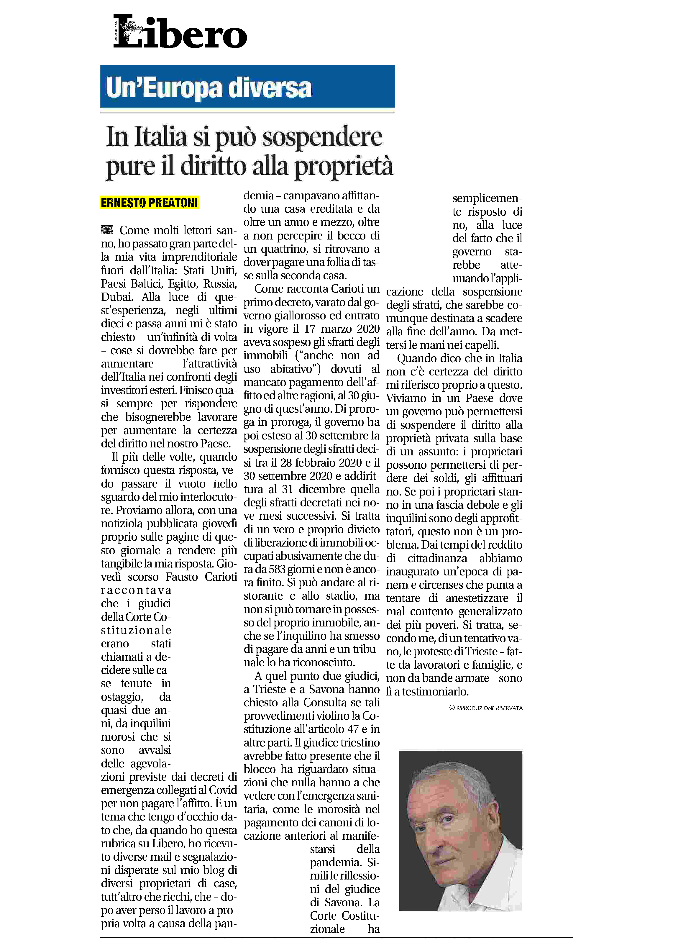 Libero – In Italia si può sospendere pure il diritto alla proprietà