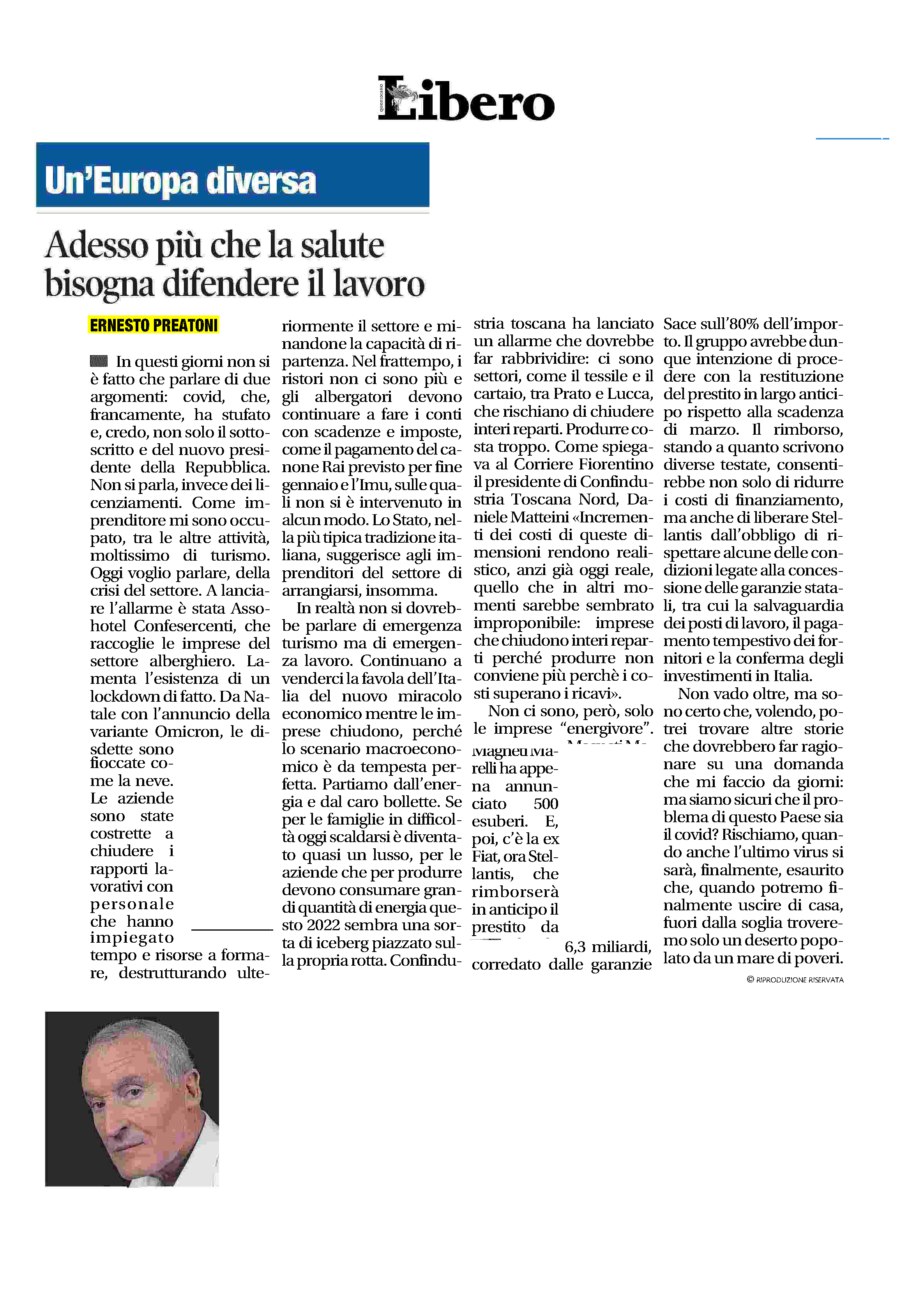 Libero – Adesso più che la salute bisogna difendere il lavoro