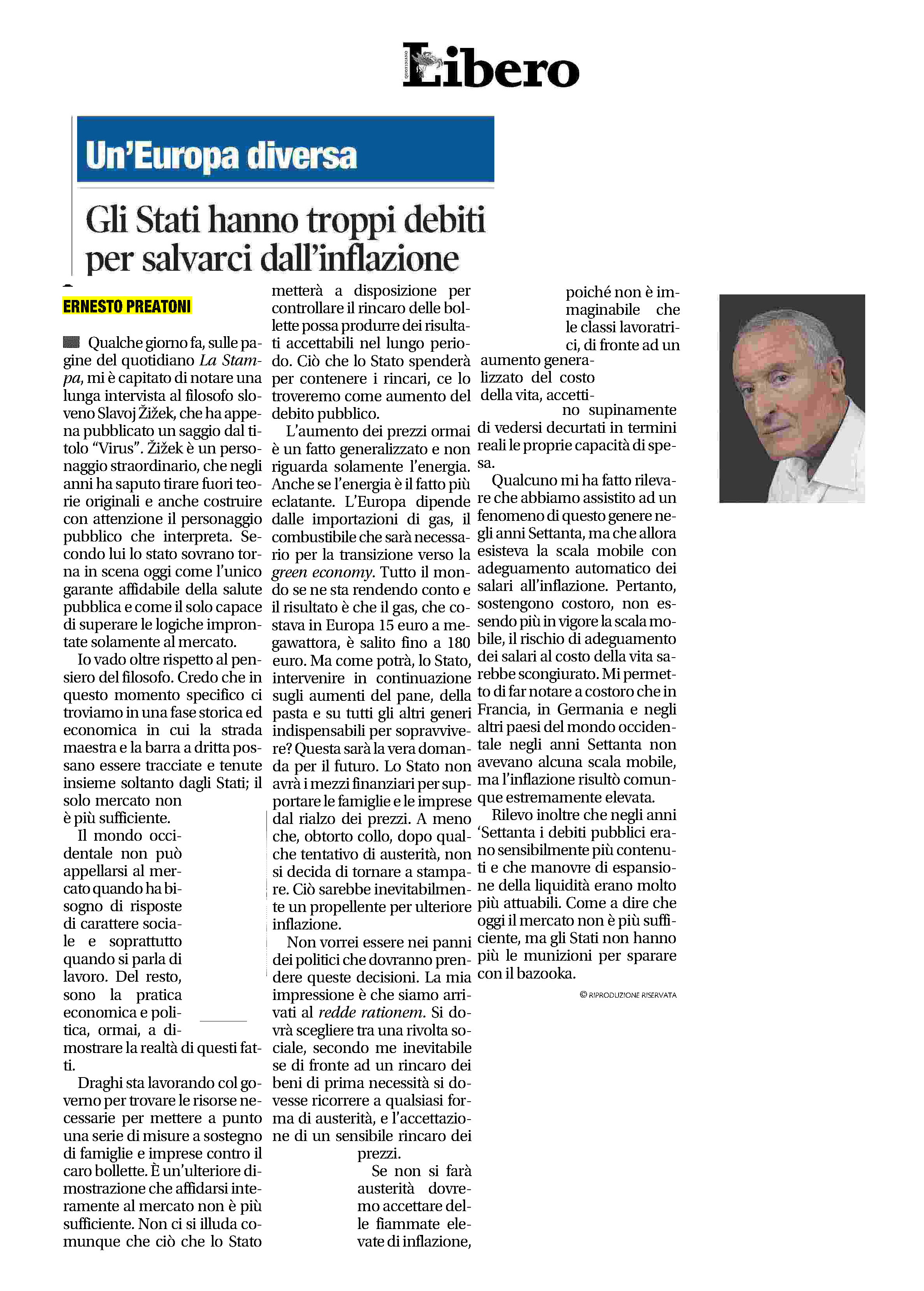 Libero – Gli stati hanno troppi debiti per salvarci dall’inflazione