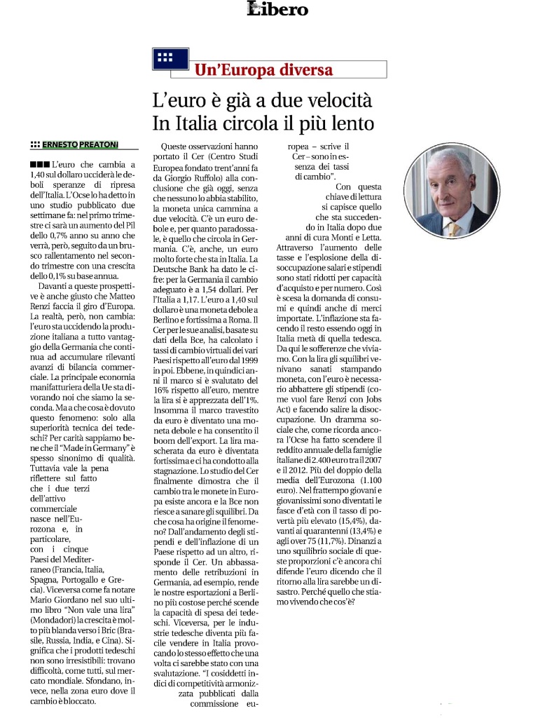 24 Mar Libero – L’euro è già a due velocità. In Italia circola il più lento Clicca qui per leggere l’articolo