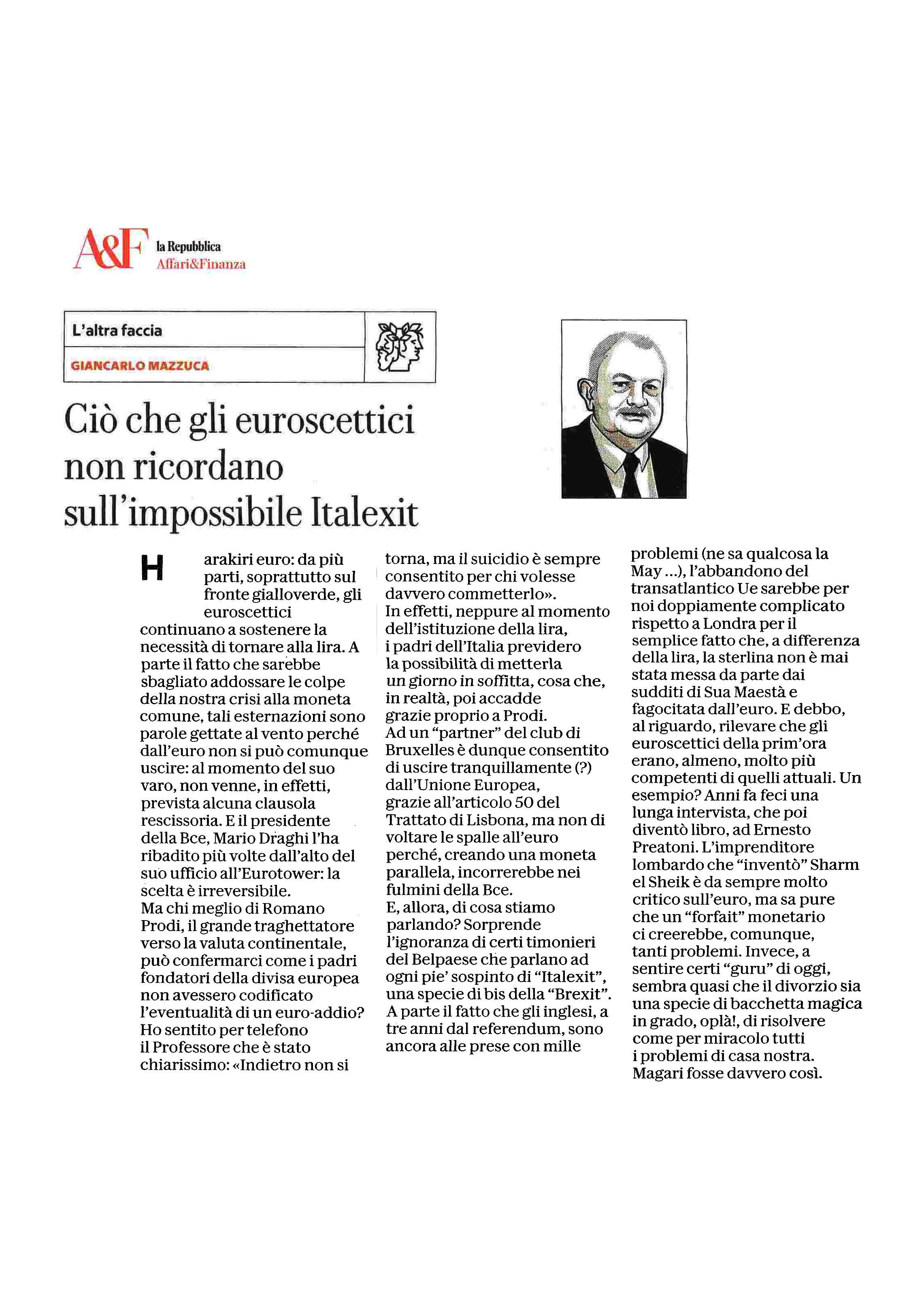 01 Lug Affari&Finanza – Ciò che gli euroscettici non ricordano sull’impossibile Italexit Clicca qui per leggere l’articolo