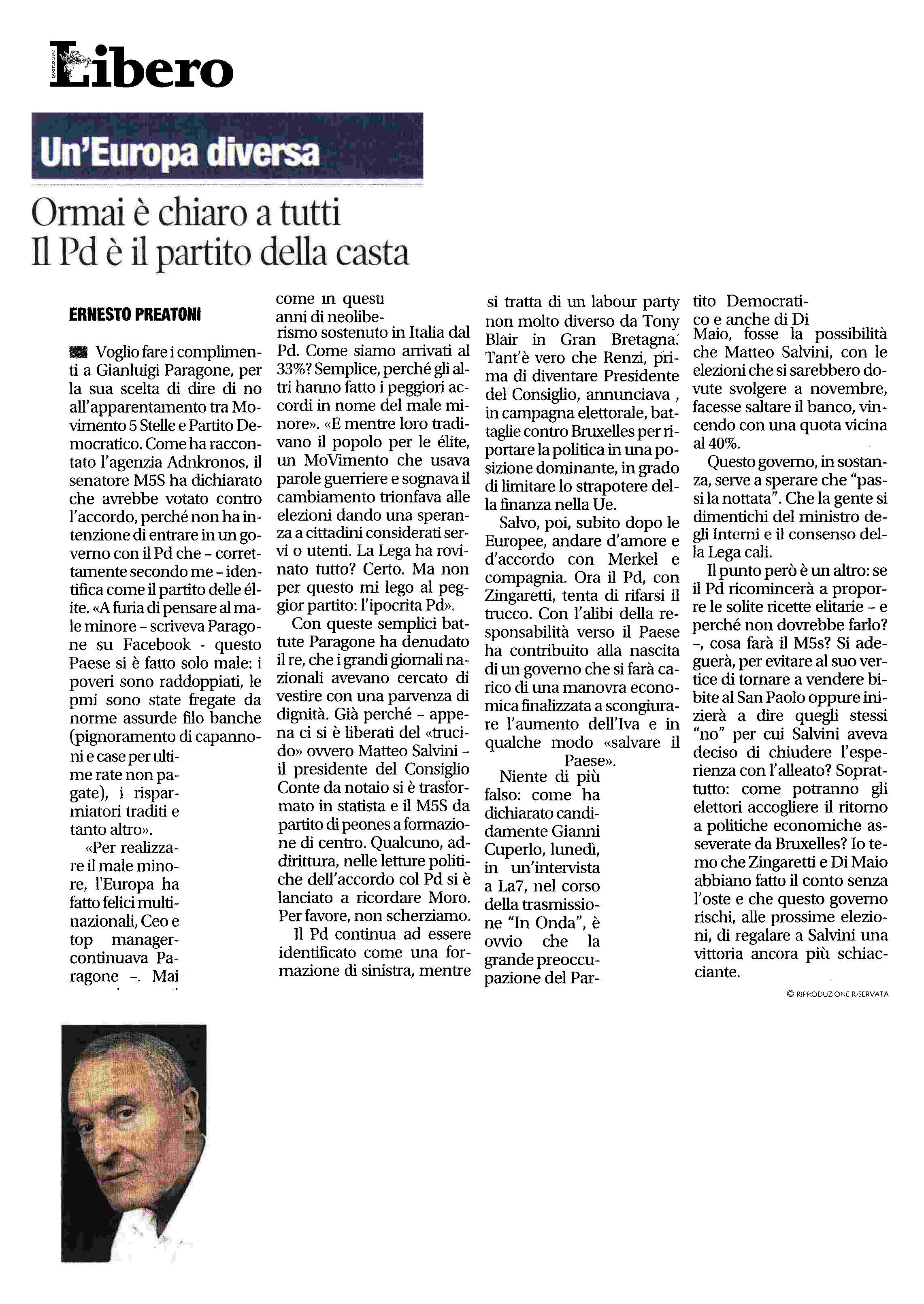07 Set Libero – Ormai è chiaro a tutti. Il Pd è il partito della casta. Clicca qui per leggere l’articolo